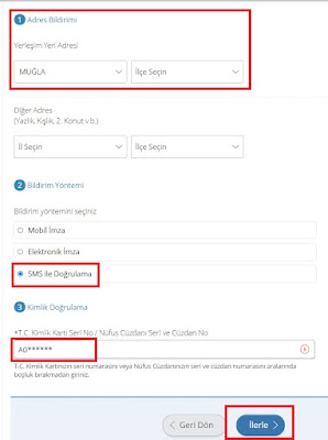Ayrıca işlemi tamamlamak için; kimlik kartı seri numarasını girmeniz ve SMS onayı yapmanız gerekiyor. İnternetten adres değişikliğini onaylamak için e devlet sitesinde adınıza kayıtlı telefona SMS gelecek ve onaylayacaksınız.