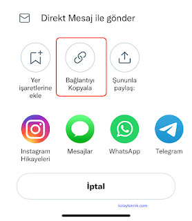 Tweet paylaş butonuna dokunarak “bağlantıyı kopyala” seçeneğine dokunun ve link kopyalanmış olur.